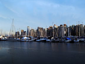 走在史丹利公園沿岸步道,可以看到充滿現代城市感的 Vancouver Downtown 高樓大廈,沿岸停泊著各式各樣的遊艇,清澈的海水,不時飛來幾隻潔白的海鷗,更增添幾分美麗的點綴,這時空中也不閒著,輕型飛機也搭載著觀光客直衝雲霄,俯視溫哥華這個北美最美麗的城市。